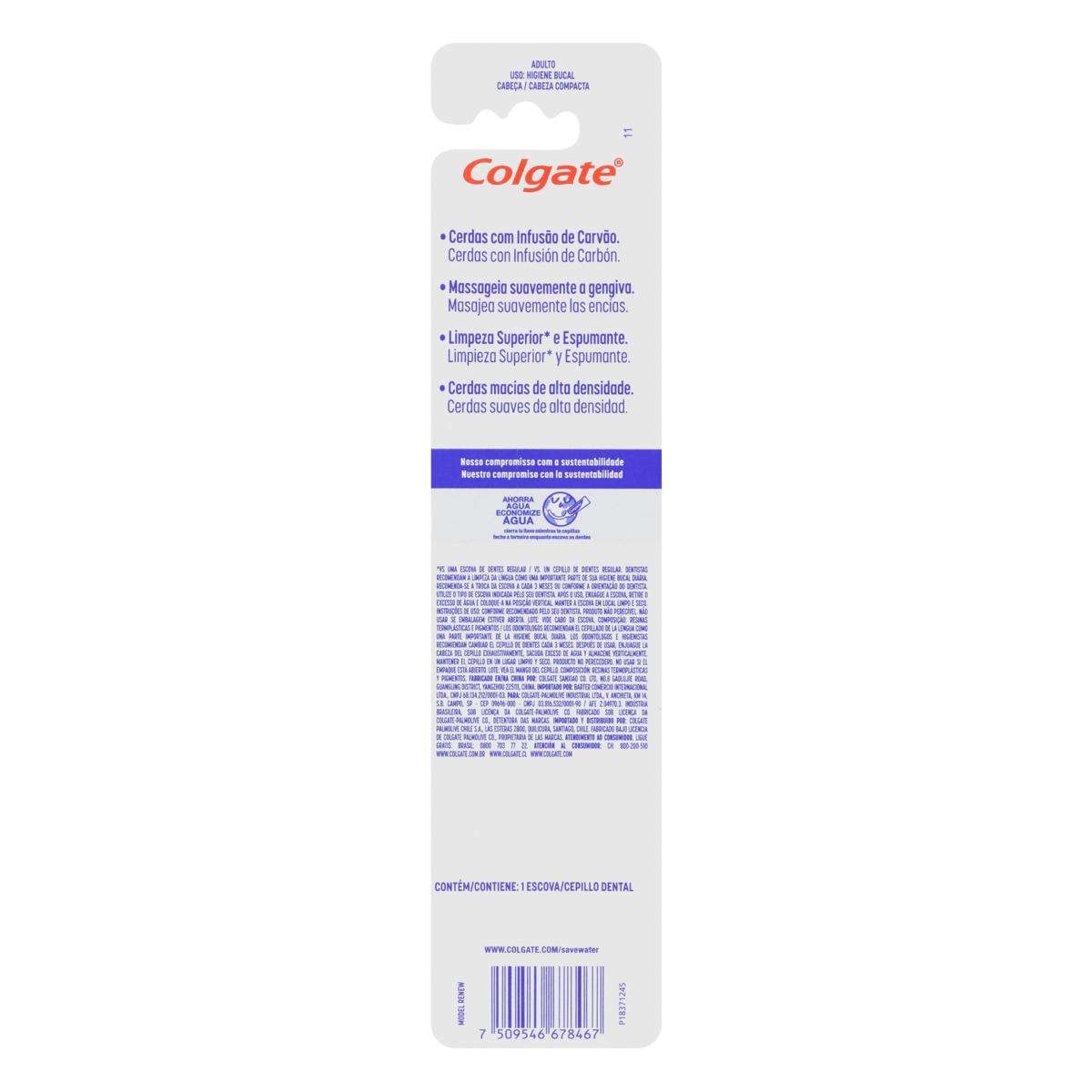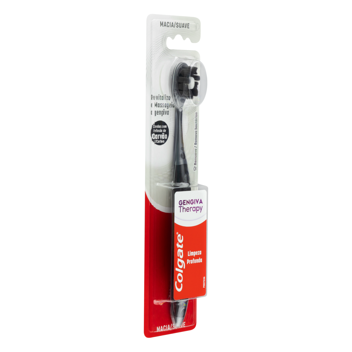 Esta escova de dente Colgate Gengiva Therapy Carvão, com cerdas macias com infusão de carvão, proporciona uma limpeza nos dentes superior, em comparação com uma escova de dentes normal. Massageie e revitalize sua gengiva para um sorriso saudável e brilhante. Benefícios para você: ¿ A escova de dente com cerdas macias com infusão de carvão. ¿ Essa escova de dente Colgate Gengiva Therapy Carvão revitaliza e massageia suavemente a gengiva (vs. escova dental regular). ¿ Cerdas multinível de alta densidade (9.800 cerdas) para você nessa escova dental Colgate. ¿ Com essa escova de dente, você tem uma limpeza superior (vs. escova dental regular) e espumante. ¿ Duas cores disponíveis para você escolher: preto e pêssego. Resinas termoplásticas e pigmentos.