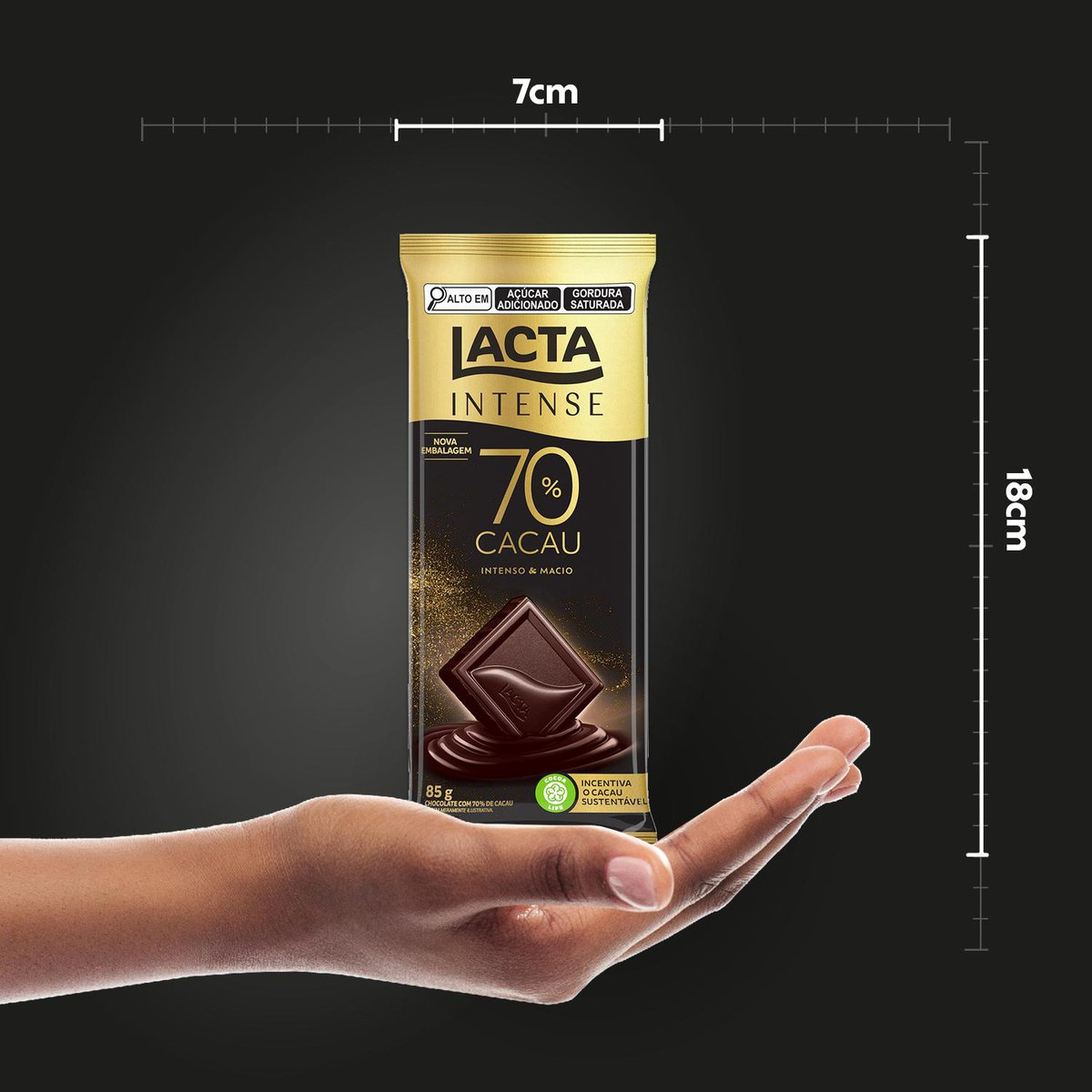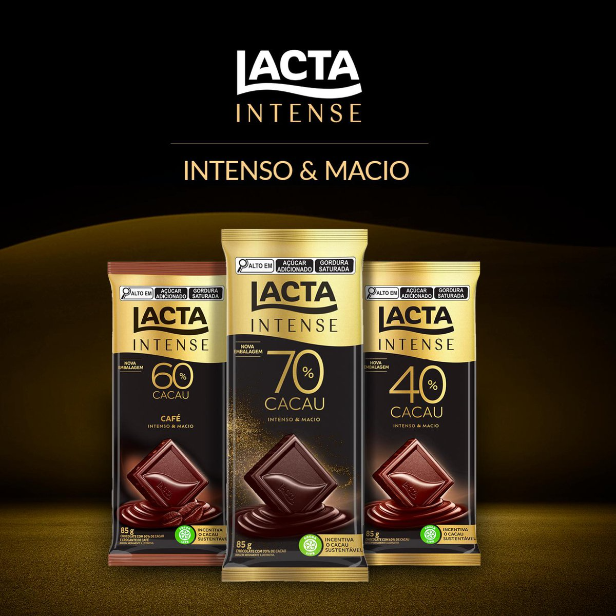 O novo chocolate Lacta Intense 70% original possui alto teor de cacau sem perder a cremosidade do chocolate Lacta que você já conhece. É uma experiência única no segmento de chocolates amargos. Possui o sabor intenso do cacau combinando com uma maciez irresistível, derretendo lentamente na boca e fazendo cada momento delicioso durar ainda mais. Além de toda a deliciosidade, este chocolate é feito de cacau sustentável, ajudando o meio ambiente. Impossível não se apaixonar! Aproveite e conheça toda a linha de produtos Lacta Intense.