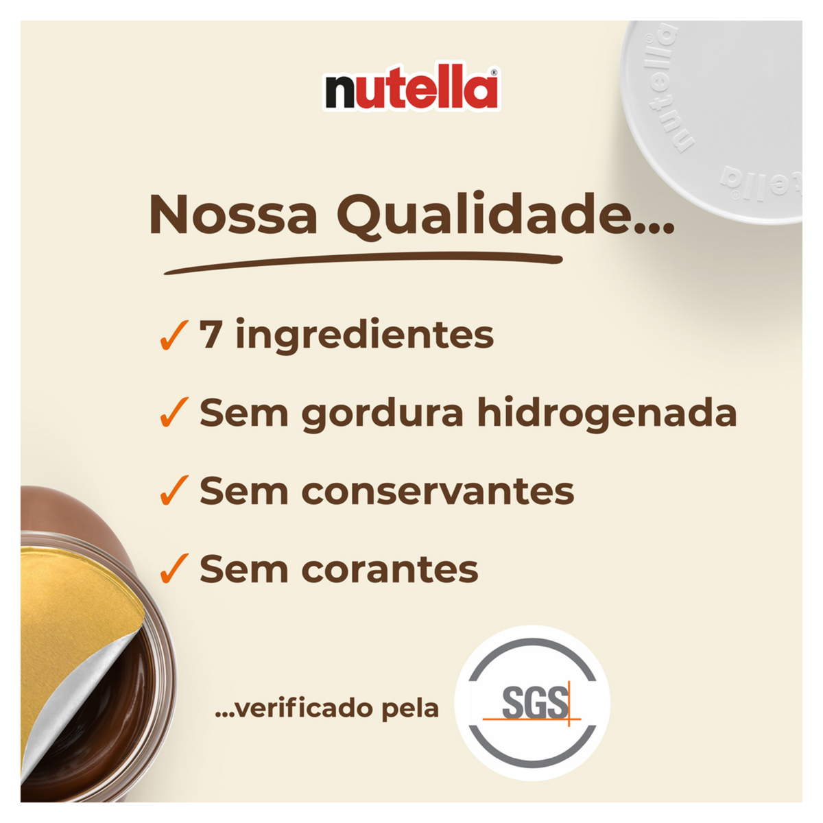 Nutella® é perfeito começar o dia de forma positiva. Ideal para deixar o seu café da manhã ainda mais agradável. Preparado com sete ingredientes especiais, o creme de avelã com cacau é sucesso em todo o mundo e vai fazer a alegria na sua casa. O creme de avelã segue encantando os paladares por seu sabor e cremosidade únicos. Há mais 50 anos deixando o café da manhã mais saboroso, com uma energia extra para começar o dia.*Imagens meramente ilustrativas.